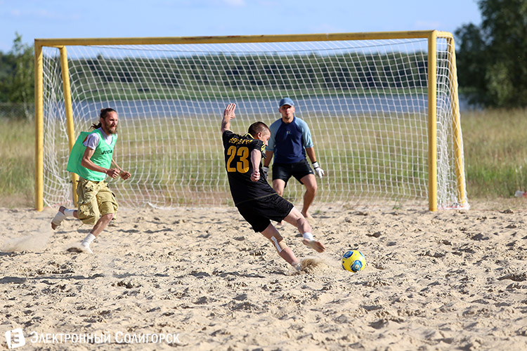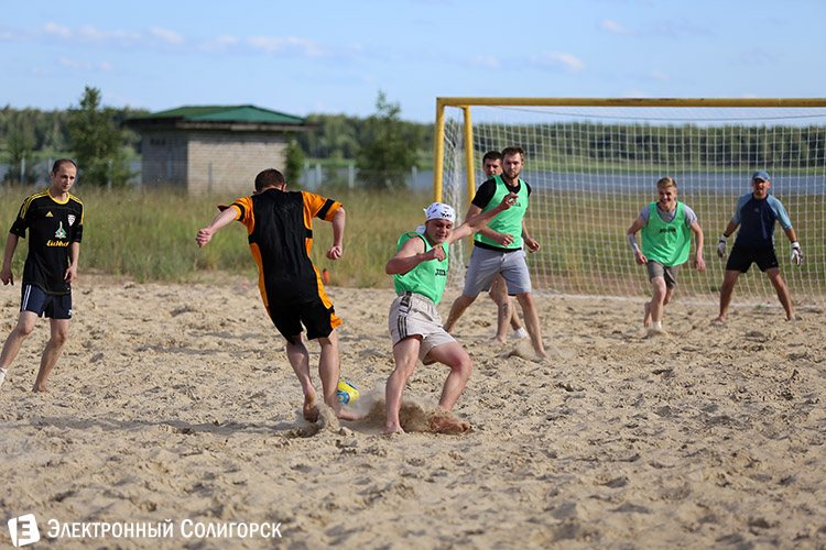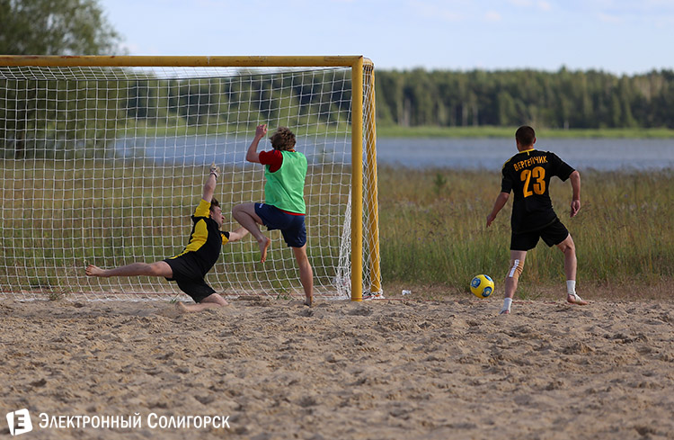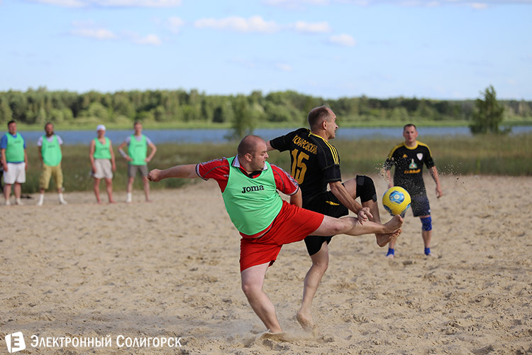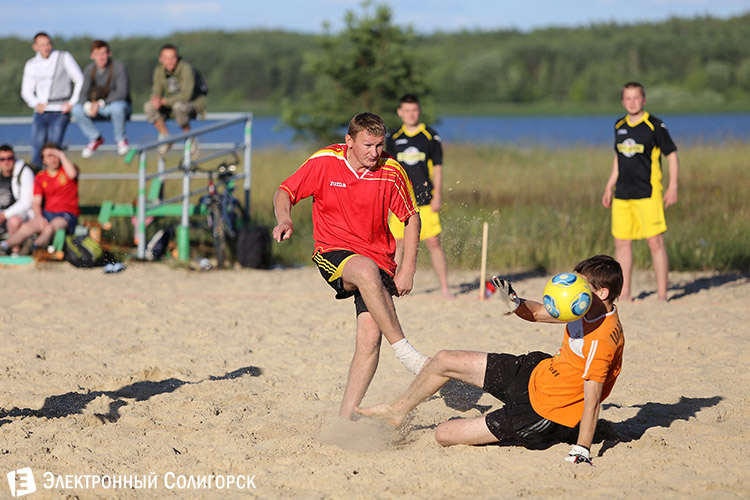 Пока на стадионах Бразилии разворачиваются жаркие футбольные баталии среди лучших команд земного шара, на солигорском пляже тоже кипят нешуточные страсти вокруг мяча. Во вторник, 16 июня состоялся второй игровой день первого Чемпионата Солигорска по пляжному футболу.