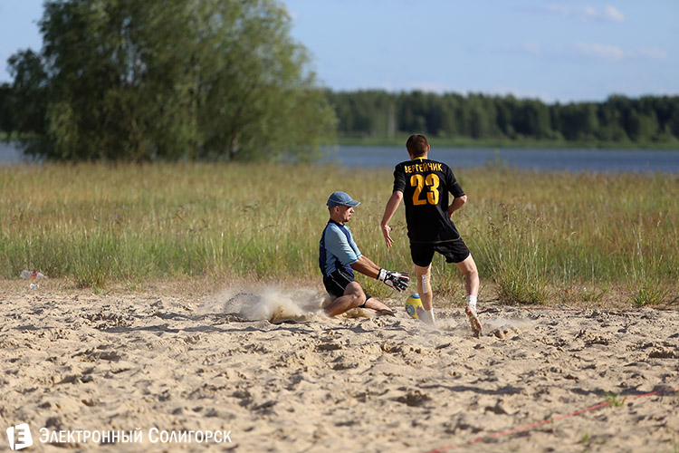 Следующая пара - команды Института горной электротехники и автоматизации и "Хет-трик". Сильнее оказались пляжные футболисты из ИГЭиА - 3:2.