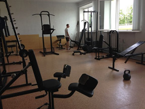 Время работы тренажерного зала: по будням с 8.00 – 20.00, в субботу с 8.00 – 17.00. Воскресенье выходной. Работает инструктор.