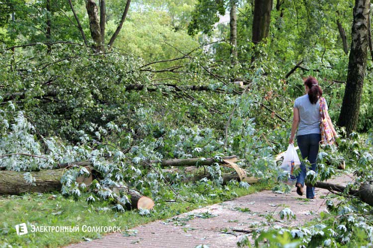 Пронесшийся 12 июля над Солигорском ураган оставил на улицах города свои деструктивные следы. И если сегодня вода с затопленных участках постепенно уходит, то вот несколько десятков вырванных силой ветра деревьев, лежащих на улицах, являют одну из главных тем для пересудов горожан.