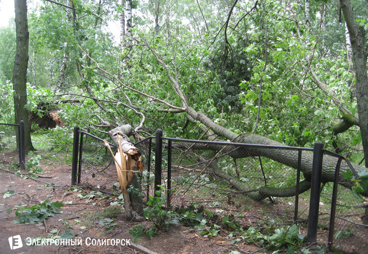 Одно из мест массового падежа больших деревьев - сквер возле Стройтреста №3, а также расположенный поблизости стадион гимназии №1. Значительная часть сквера завалена упавшими деревьями, некоторые из которых повредили скамейки, ограждения, вырвали корнями тротуарную плитку. Прохожим приходится корректировать свой маршрут, переступая или обходя лежащие на дорожках стволы и кроны упавших больших деревьев. Аварийными службами с помощью бензопил ведется ликвидация последствия стихии и расчистка улиц. Детишки облюбовали для игр стволы упавших деревьев, не упускают горожане запечатлеть на фото необычную для повседневности картину.