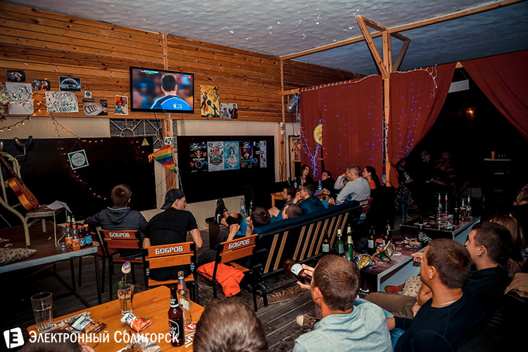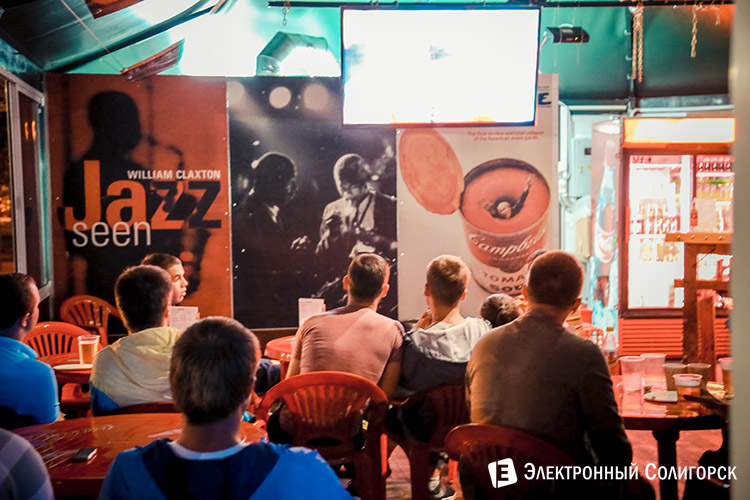 Здесь было потеснее, монитор был один, а трансляция велась с ОРТ. Впрочем, атмосфера была весьма теплой и дружеской, а посетители позволяли давать волю эмоциям, вскакивая то и дело со стульев.