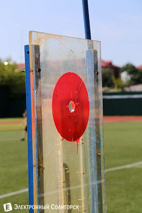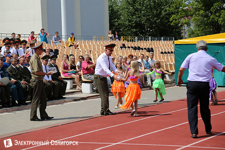 День третий. Один из самых зрелищных видов программы - боевое развертывание от мотопомп, проходившее на поле солигорского спорткомплекса "Шахтер".