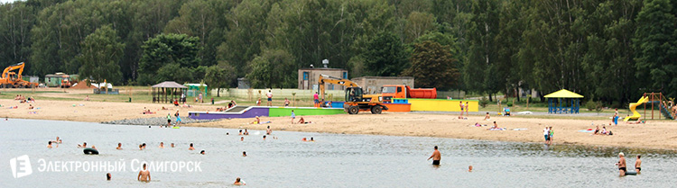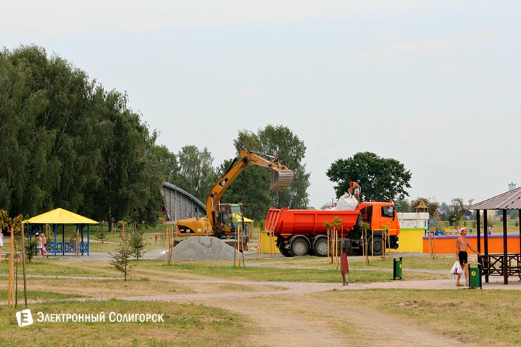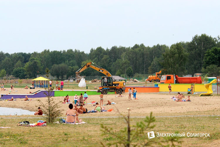 Корреспонденты "Электронного Солигорска" продолжают следить за ходом благоустройства Детского пляжа в Солигорске. День за днём излюбленное место отдыха среди солигорчан приобретает новые черты. На Детском пляже появились скамейки, навесы, под которыми можно спрятаться от палящего солнца, дорожки выложенные тротуарной плиткой, питьевой фонтан и дополнительные кабинки для переодевания. Благоустройство коснулось всей береговой линии водоёма. Активно ведутся работы по монтажу системы циркуляции воды.