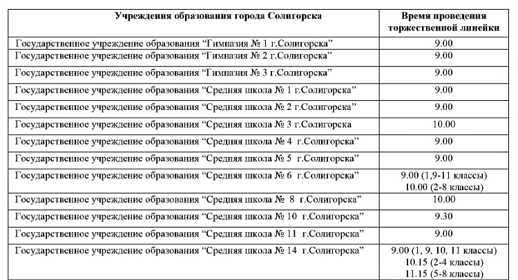 На сайте отдела образования, спорта и туризма Солигорского райисполкома уже появился график торжественных линеек.