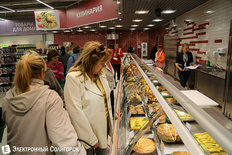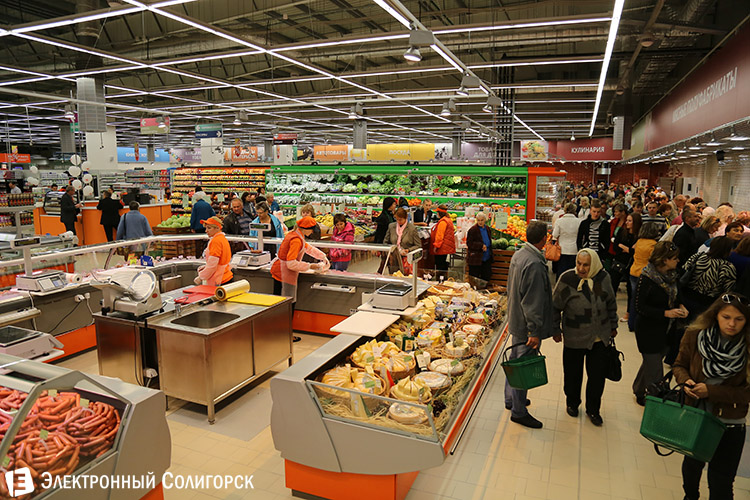 И вот он долгожданный момент! "Корона" открыта, доступ в огромное оранжево-белое здание получен. Людской поток мгновенно хлынул в торговый зал, принявшись с неутомимым любопытством изучать просторы нового крупного магазина.