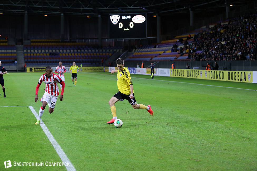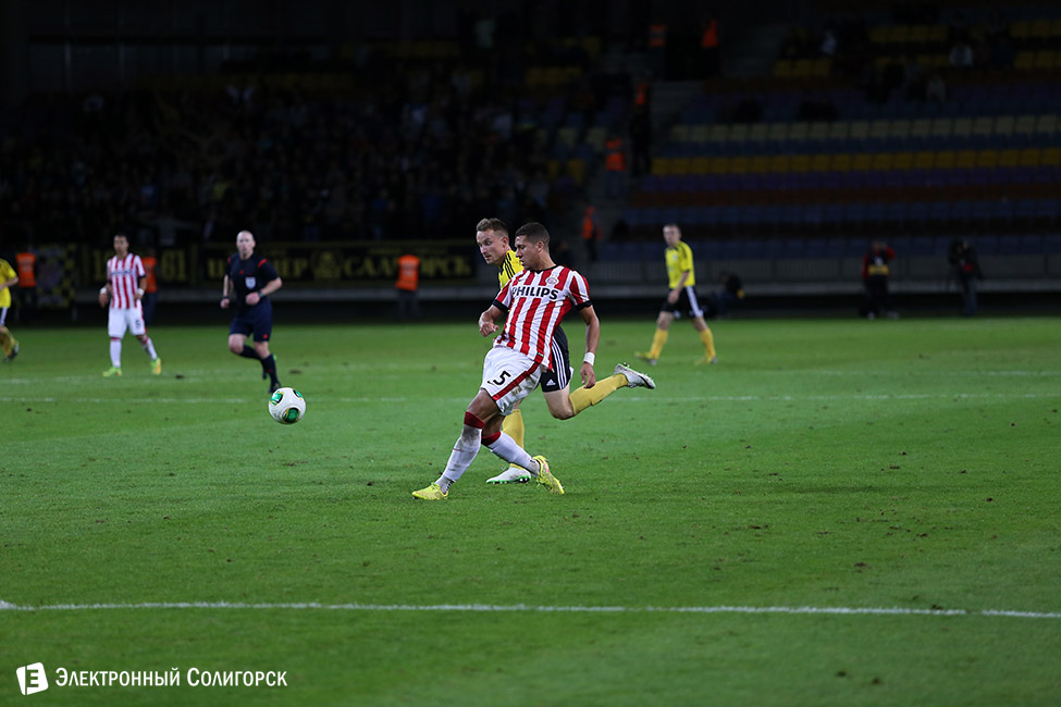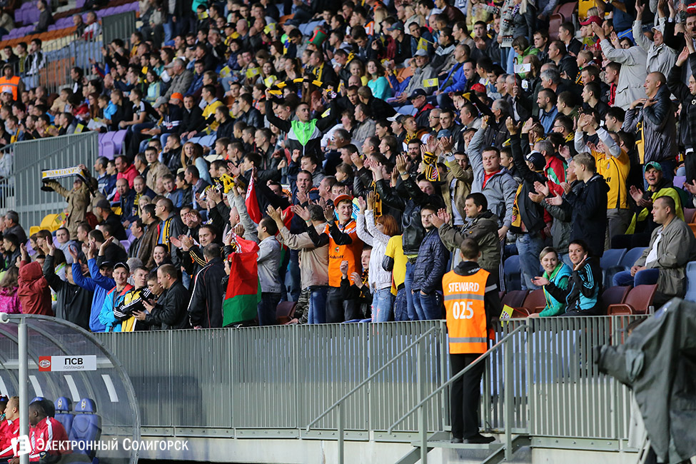 28 августа "Шахтер" проводил ответный матч раунда плей-офф Лиги Европы с именитым голландским ПСВ. Атмосфера на трибунах не давала усомниться, что на "Борисов-Арену" пришел настоящий спортивный праздник. Подопечные Сергея Боровского провели отличный матч, умело защищались, остро контратаковали, практически ни в одном компоненте игры не уступая сопернику. Однако класс есть класс. Игрок сборной Голландии на исходе матча дважды поразил ворота Артура Котенко, тем самым поставив крест на надеждах солигорчан попасть в групповой этап турнира. Солигорский клуб уступил голландскому со счетом 0:2.