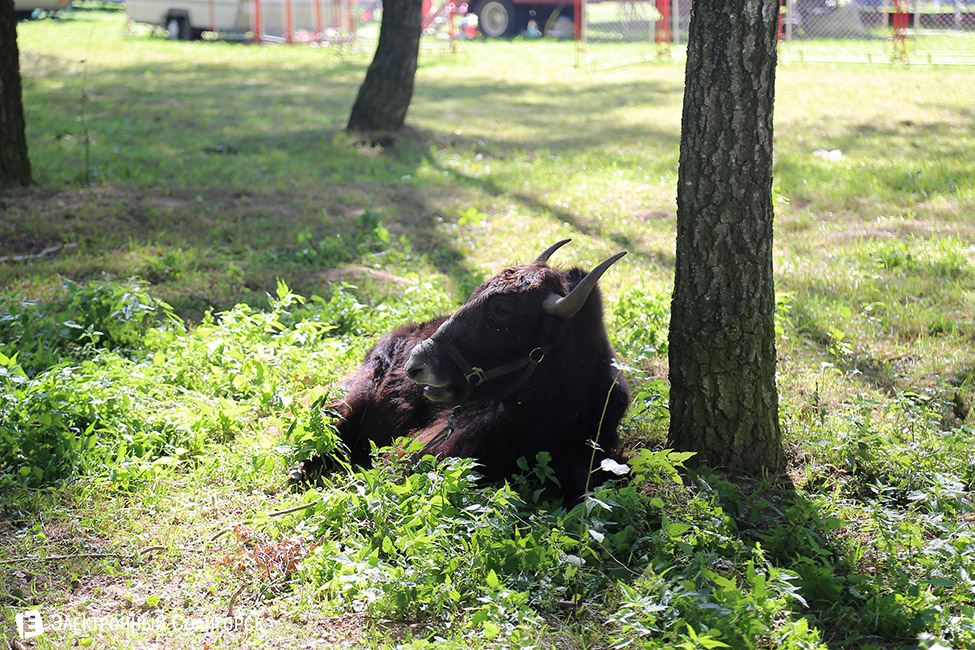 Вокруг возводимого купола, то тут то там можно встретить мирно отдыхающих перед предстоящим концертом зверей. Цирковые животные, к слову, очень добрые и ласковые, иногда даже создавалось впечатление, что они намеренно позировали нашему фотографу.