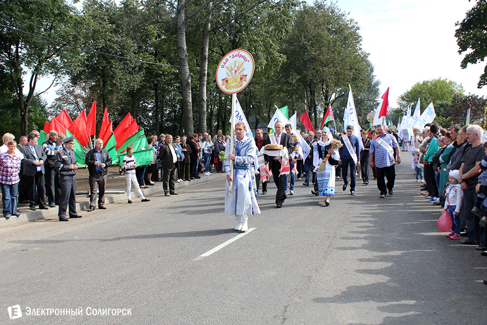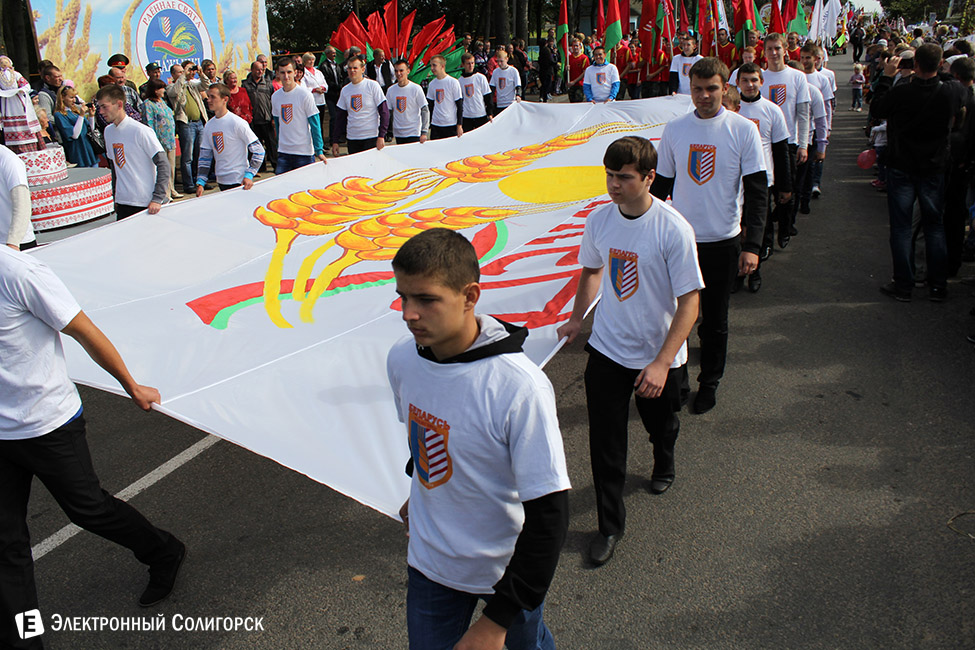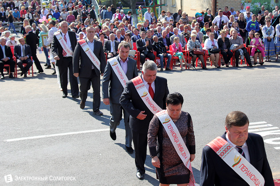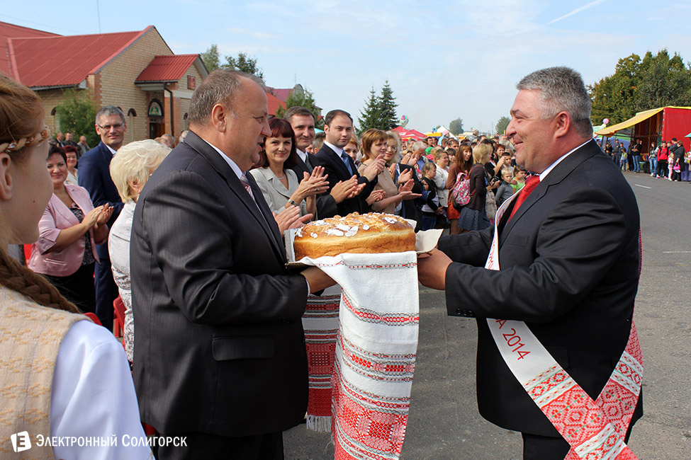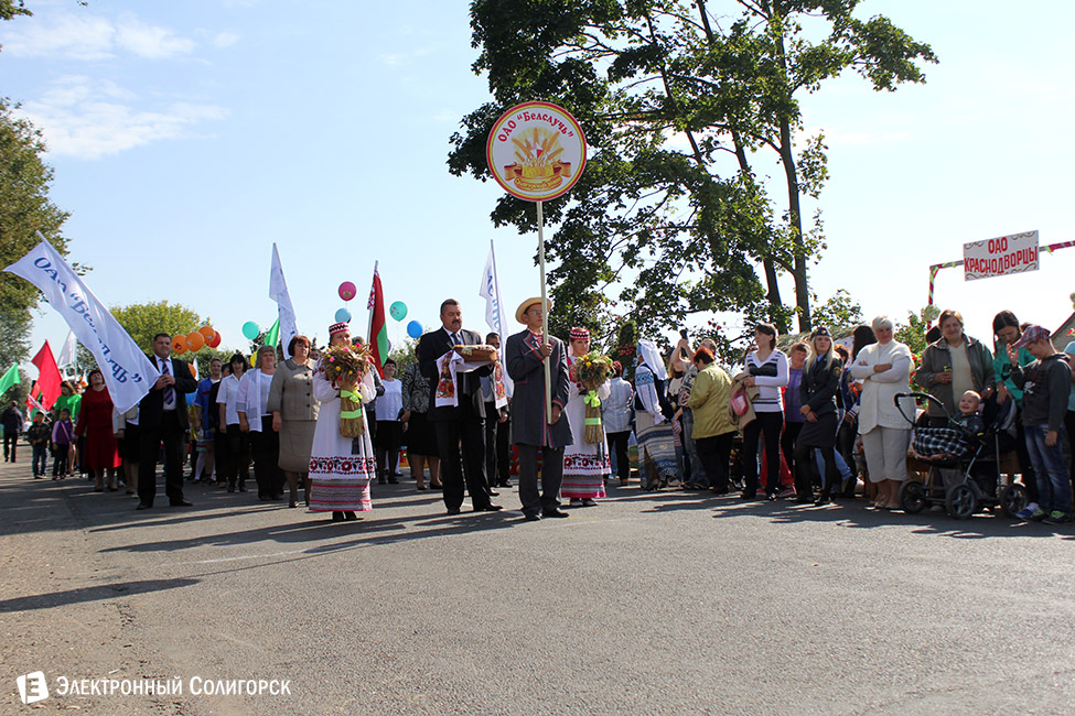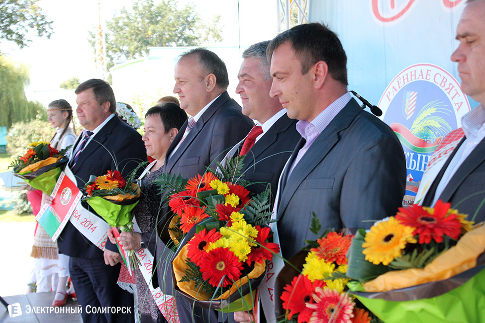 Последовавшее вслед за праздничным шествием чествование победителей жатвы торжественной речью начал председатель Солигорского райисполкома Александр Римашевский. Обращаясь к труженикам сельского хозяйства, глава района поблагодарил тех, кто вел самоотверженную битву за урожай на полях, а также отметил: "Слаженность и согласованность в работе тружеников и руководителей хозяйств, организаций района помогли достичь высоких показателей. Хорошая работа агропромышленного комплекса в этом году хороший задел на будущее. Имея хлеб в закромах, достаточную кормовую базу, нам не страшны никакие потрясения".