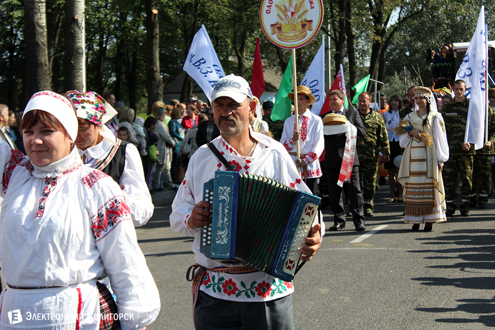 Каждое из участвовавших в шествии предприятий приготовило к "Дажынкам" особый каравай из муки урожая нынешнего года. Первыми свой символ домашнего изобилия вручил председателю Солигорского райисполкома Александру Римашевскому руководитель ОАО "Большевик-Агро".
