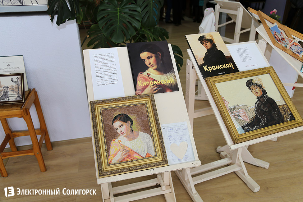 На выставке, посвященной Дню библиотек, участницы клуба «Флора» представили картины и репродукции, посвященные определенной книге.