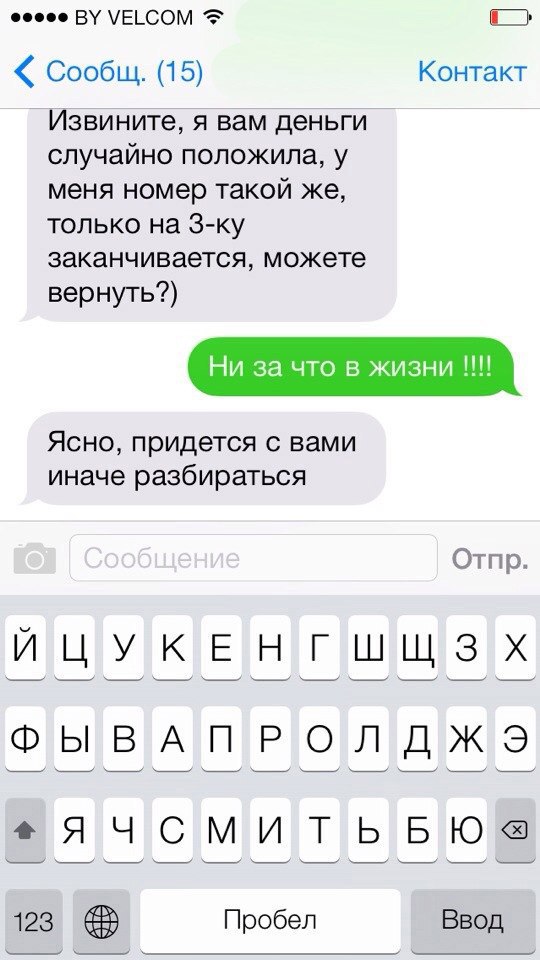 А вот смс-история молодого человека, который решил пошутить над девушкой, случайно положившей деньги на его счет. "Видимо, нужно было все-таки смайлик поставить, - сетует наш подписчик, - ведь я уже направлялся к банкомату, чтобы вернуть деньги".