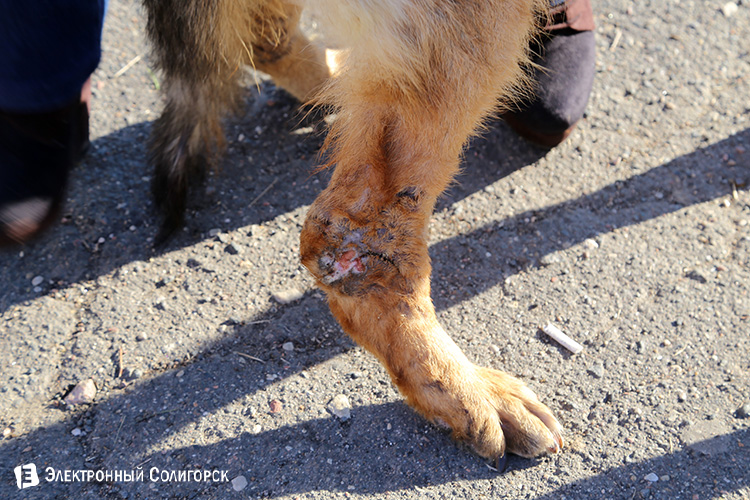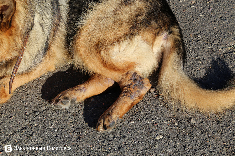 - По словам очевидцев, после мощного удара собака с диким визгом поползла в лес. Так называемый хозяин, естественно, благополучно уехал, сделав свое грязное дело. Лапы у овчарки были переломаны. Местные жители, как ни странно, помощь собаке не оказали, даже не попытались, подумали, что умерла. Поражает безразличие… Спустя месяц сильный духом пес, не потерявший веру в людей, вышел к людям... в ужасном состоянии.