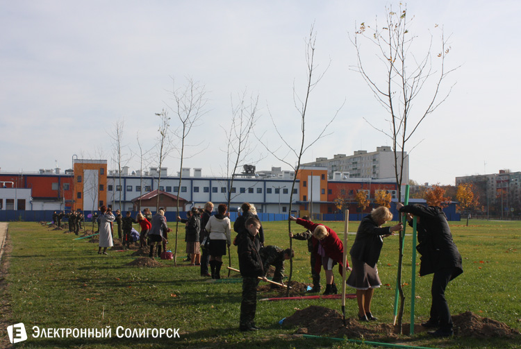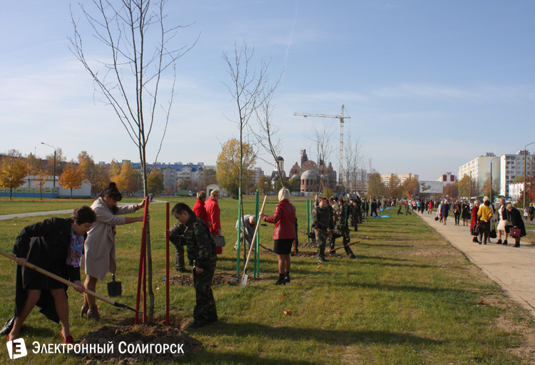 Следующим этапом стала высадка по обеим сторонам пешеходной дорожки более полусотни саженцев рябины. Символично, что происходило восстановление Аллеи в в День Матери. Солнечная погода благоприятствовала доброму делу, на которое собрались солигорские матери, награжденные Орденом Матери, другие активные женщины города, представители районной власти и солигорских предприятий и, конечно же, упомянутые ученики СШ №1. Сюда же был перенесен и памятный знак о закладке Аллеи.