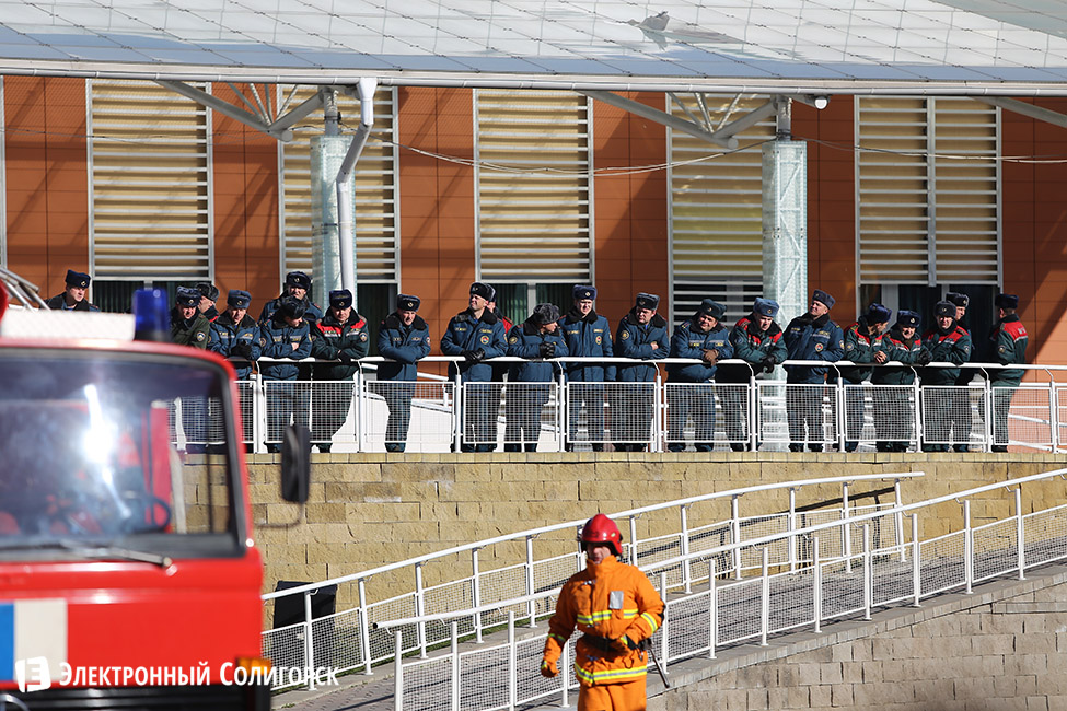 Если кто-то стал сегодня днем очевидцем скопления пожарных машин возле ледового дворца - не пугайтесь и не спешите рассказывать о громком ЧП. Сегодня в Солигорском спортивно-зрелищном комплексе Солигорска проходили масштабные учения МЧС. В них принимали участие: весь состав Солигорского ГРОЧС, а также представители Минского областного управления МЧС. По распоряжению Солигорского райисполкома движение на участке дороги по ул. К.Заслонова от перекрестка с ул.Ленина до перекрестка с ул. Л.Комсомола было перекрыто.