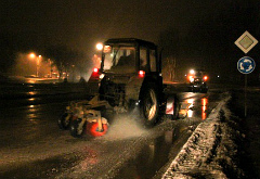 - В настоящее время для этих целей задействованы 1 пескоразбрызгиватель, 1 погрузчик и 1 трактор со щёткой. Эта техника работает круглосуточно – каждая смена по 12 часов.