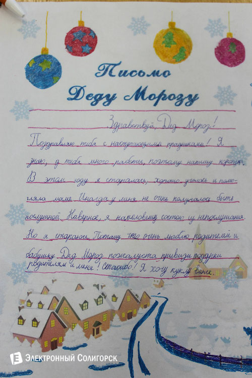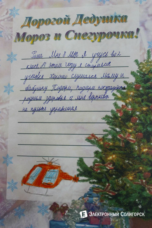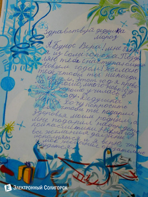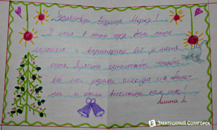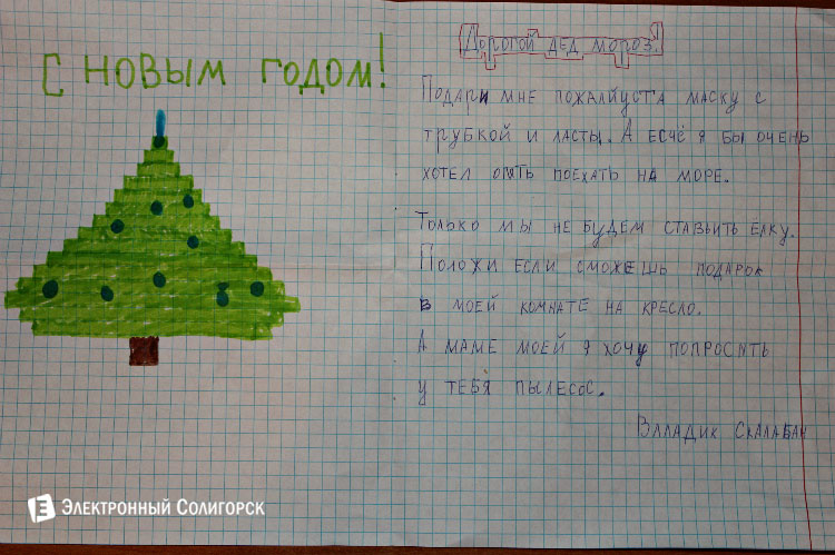 За беспрепятственный доступ к почтовому ящику Деда Мороза редакция «Электронного Солигорска» благодарит администрацию школы №2, а также тех родителей, которые откликнулись на просьбу корреспондента и разрешили ознакомиться с содержимым конверта, адресованного сказочному герою, прежде, чем отнести его почту. Надеемся, что все детские мечты, которые были озвучены в этих и многих других письмах, исполнятся! С наступающим Новым годом!