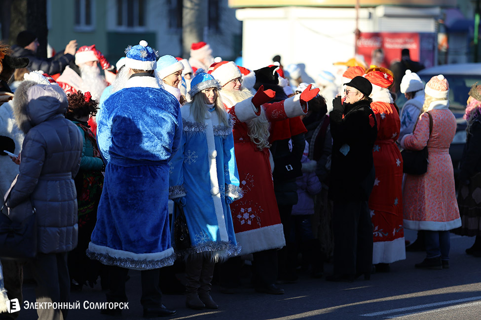 Организаторы шествия анонсировали, что нынешний парад Дедов Морозов станет самым масштабным среди аналогичных солигорских мероприятий. В честь 90-летия Солигоркого района в параде было запланировано участие 90 пар новогодних героев. Так ли было на самом деле - сосчитать не удалось. Но это и не главное, ведь Дедов Морозов, Снегурочек, героев сказок, мультфильмов, добрых персонажей и симпатичных представителей нечистой силы собралось действительно очень много.