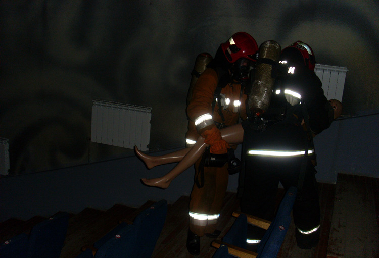 По прибытию к месту вызова звено газодымозащитной службы провели разведку для спасения людей. В зрительный зал обнаружили двух пострадавших, при помощи маски вынесли их на чистый воздух, передали в скорую медицинскую помощь и одновременно приступили к тушению пожара.