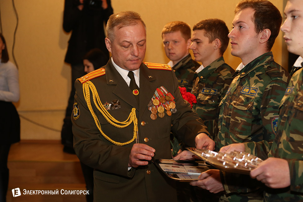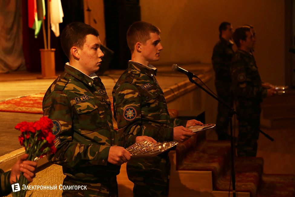 Торжественное мероприятие “Служу Отечеству!” в рамках Года молодежи, посвященное 70-летию Победы в Великой Отечественной войне, Дню памяти воинов-интернационалистов и Дню защитников Отечества прошло вчера во Дворце культуры Солигорска.