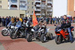 К участникам мероприятия обратились представители Солигорского райисполкома и Госавтоинспекции, призвав быть дисциплинированными на дороге, не рисковать жизнью и здоровьем своими и других людей. Примерно такой же месседж был заключен и в танцевальном флешмобе юных солигорчан. А затем стартовала самая зрелищная часть программы - веселые и специфические байкерские конкурсы.