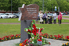 В Солигорске состоялось торжественное открытие памятного знака, установленного в честь 70-летия Победы советского народа в Великой Отечественной войне. Памятный знак установлен на улице Ленина, рядом с Центром творчества детей и молодежи Солигорского района.