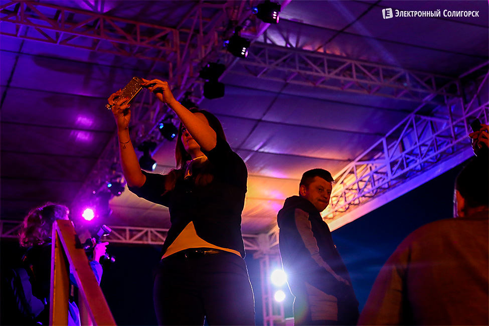 Катя Ивлиева активно селфилась на фоне солигорских зрителей...