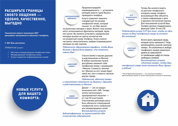 - «Минский номер» - организация телефонного номера с нумерацией г. Минска в любом населенном пункте республики.