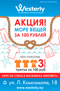 Внимание, АКЦИЯ во всех фирменных магазинах Westerly: с 17 июля, купите две вещи в нашем магазине, и получите третью по удивительной цене — 100 бел. рублей!