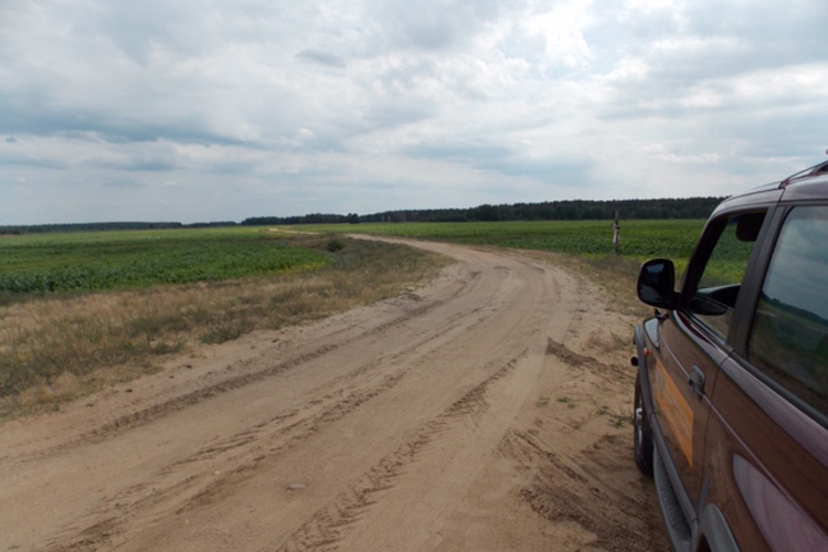 Первая и начальная точка остановки это Старобин – городской посёлок, в Солигорском районе известен с начала 16 века как поселение в Слуцком княжестве ВКЛ. Владение князей Олельковичей, Витгеншейнов, Гогенлоэ. Сейчас известен крупнейшим торфа-перерабатывающим заводом в Европе. В центре в выходной день не многолюдно, если учесть, что еще некоторое время назад тут проходили масштабные ярмарки, а народ стекался со всех уголков губернии. Ярмарки проходили очень шумно, с веселым гуляньем до позднего вечера. Совершались давно запланированные покупки, всегда был повод увидеть своих знакомых и друзей, поделиться новостями. Вечером вереницы повозок медленно покидали Старобин, а уставшие и довольные люди сидя в своих повозках наслаждались вечерним закатом. По реке в челнах «долблёнках», жители спускались вниз по течению к своим родным местам целой цепочкой. Не многие наверно помнят что в Старобине была когда то пристань, к которой на ладьях привозили соль, да-да именно соль, стратегический продукт использовался как самый первый консервант для продуктов у населения, и люди очень дорожили этим продуктом. Ведь, прежде чем попасть на стол, соль везли чумаки по так называемому чумацкому шляху, не редко подвергались ограблению разбойников. Поэтому чумаки были сильные и опытные люди. Далее соль грузилась в ладьи и по рекам отправлялась в северные районы, так она и попадала к нам в район пройдя реку Припять и поднявшись вверх по течению реки Случь. Вот такой замечательный соляной путь проходил и по нашему Солигорскому району. Дорога Старобин - Ленино начинается за так называемой Братской горой в конце Старобина, уходит через поле в лес, дорога прямая и довольно твёрдая, сказываются исторические корни. Мы рады такому обстоятельству, и казалось бы только въехав в лес выезжаем к маленькой и уютной деревне под названием Летенец. Первые упоминания о деревне идут в 19 веке как фальварок в Минской губернии. В 1897 году в ней насчитывалось три двора и четырнадцать жителей. Деревня очень уютная, кажется что здесь замирает время и все становится каким то не обычным. С одной стороны деревню окружает лес, а на Южной ее части открывается живописный вид на заливные луга реки Случь. Мы проезжаем ее по старой дороге согласно нашему навигатору и заложенным в него картой конца 19 века с хорошей привязкой и попадаем в опять лесной массив где дорога продолжает радовать нас своей доступностью. Наш краевед Юрий Китун предлагает остановится в интересном месте, место это интересно тем, что на этом месте стоял господский дом Мелковичи, сама деревня Мелковичи стоит на противоположной стороне реки. Место постройки усадьбы было выбрано не случайно, высокие берега это возможность пережить с минимальным ущербом в весенний паводок. Остались заметны углубления фундамента построек усадьбы. Осмотрев место, сделав не большую паузу, хотим перейти от стационарных автомобильных раций к переносным, и тут понимаем что переносные рации настроить не удастся. Придётся ехать с рациями на крышах, Алексей убирает антенну рации с крыши и ставит на капот своего внедорожника, низко опущенные ветви деревьев постоянно норовят сбросить ее с крыши автомобиля. Двигаемся по просёлочной дороге вдоль красивого пшеничного поля и попадаем на край деревни Жёлтый Брод, он известен в начале 20 века к