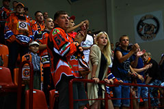 Редакция "Электронного Солигорска" не могла пропустить стартовый матч чемпионов Беларуси на домашней площадке. С ледовой арены мы вернулись с несколькими десятками выразительных снимков прошедшего матча. Предлагаем вам окунуться в атмосферу вернувшегося в Солигорск после межсезонья большого хоккея.