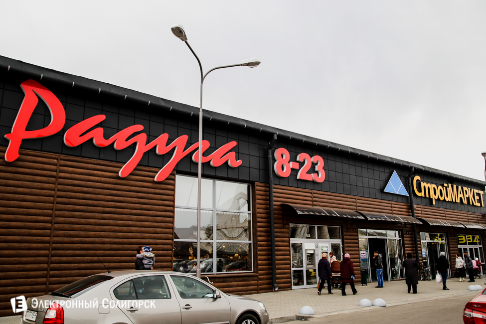 ТЦ "Радуга" - это, в первую, очередь супермаркет площадью 1100 кв.метров с большим ассортиментом продовольственных товаров. Супермаркет "Радуга" предлагает случчанам то, к чему уже давно привыкли жители Солигорска: широкий ассортимент качественных продовольственных товаров, привлекательные цены, постоянные акции и скидки. Все это дополняется современным дизайном помещения, удобной выкладкой товара, приятным освещением, доброжелательным и внимательным обслуживанием. К услугам многочисленных покупателей 12 касс.