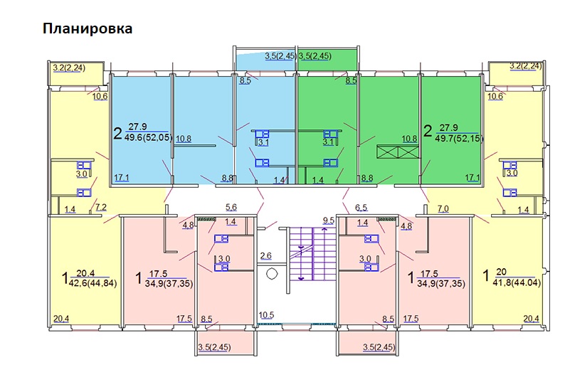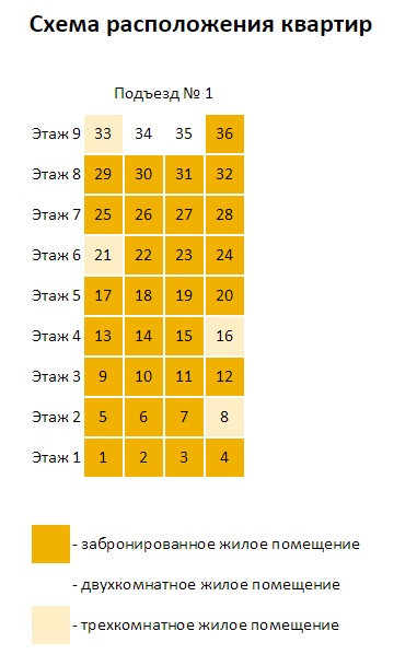 Планировка подъезда №1 (двух, трехкомнатные жилые помещения)