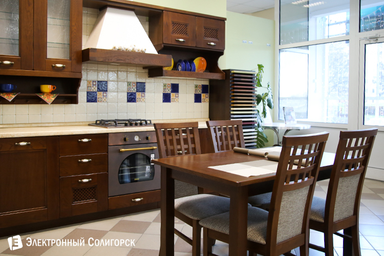 Массив (дуб, ясень, ольха, сосна) – превосходный материал для изготовления кухни. Дерево специально обрабатывается, что позволяет ему выдержать как повышенную влажность, так и перепады температур.