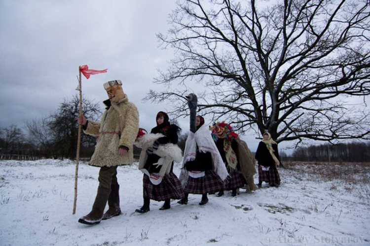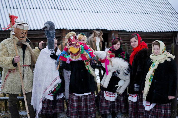 Вы атрымаеце магчымасць пазнаеміцца з традыцыйнымі маскіраванымі персанажамі: Гаспадыняй, Казой, Жураўлём, а таксама з унікальным персанажам у гурце шчадравальнікаў – Дзедам Продкам у берасцяной маске, аналагаў якой намя на Беларусі.