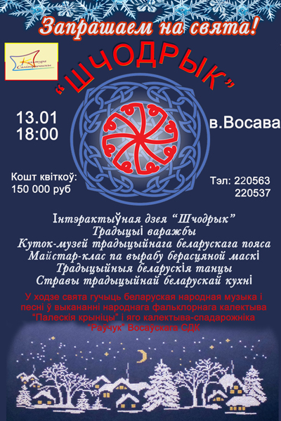 Свята адбудзецца 13 студзеня ў 18.00 на вул.Працоўнай весцы Восава Салігорскага раёна. Кошт квіткоў 150 000 беларускіх рублёў. Транспартныя выдаткі не ўваходзяць у кошт квітка.