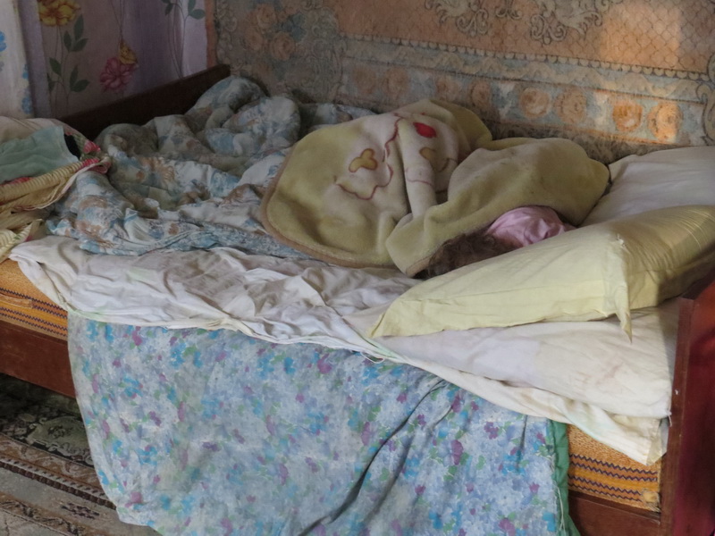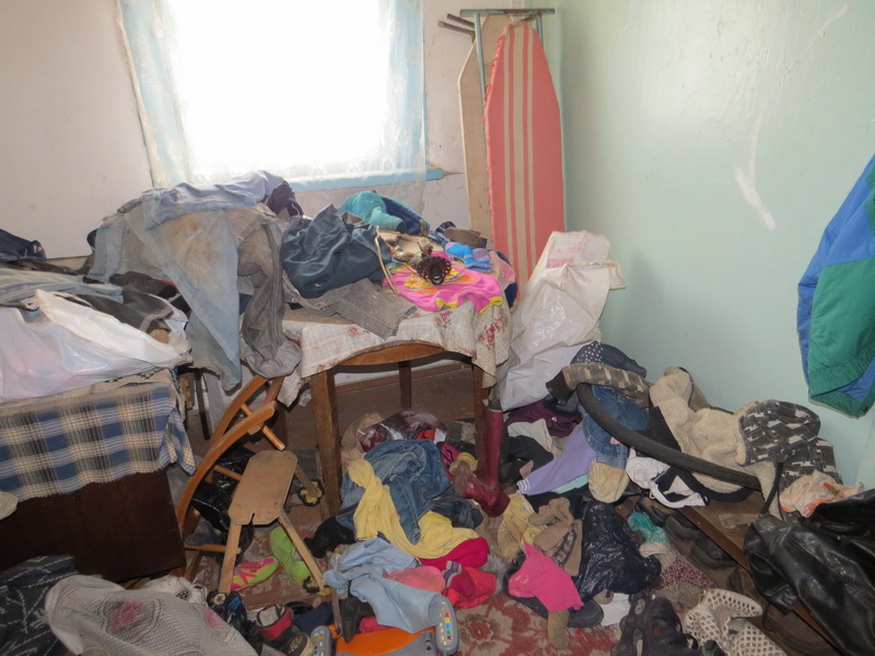 Переступив порог, в глаза сразу бросилась неопрятность во всём. Видимо к порядку в этом доме не приучены. В доме холодно, заготовленных дров нет. Дом отогревается сырыми древесными обрезками. Одежда и постельное белье, на котором спят дети грязное, кругом царит ужасающая антисанитария. Продукты питания имеются в минимальном количестве.