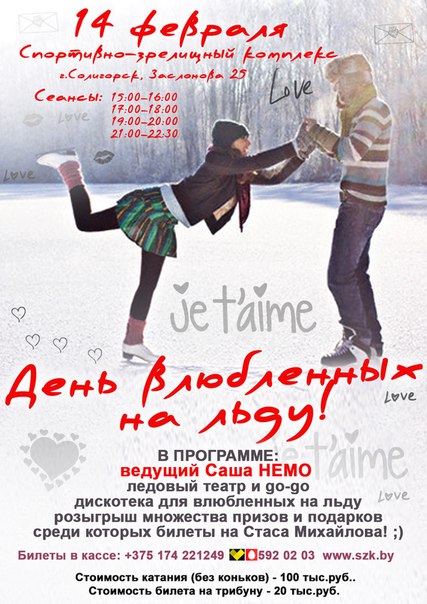 14 февраля в День всех Влюблённых на катке Солигорского Спортивно-зрелищного комплекса состоится грандиозная дискотека на льду!