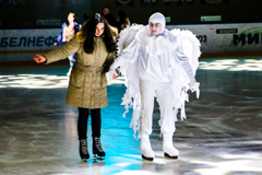 А самое интересное начиналось, когда на лед выходил Саша Немо. Известный белорусский исполнитель в этот вечер был ведущим программы, развлекая пришедших на каток разговорами, шутками и задорными конкурсами. Кроме этого, на катке находилась целая команда ангелов, которые не только создавали атмосферу волшебства своим видом и присутствием, но и уверенно держались на коньках, помогая всем желающим прокатиться с ветерком.