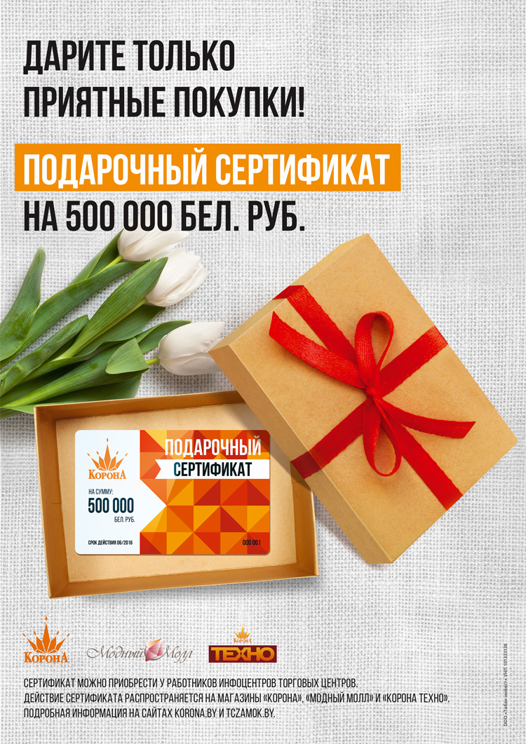Подарочный сертификат от ТЦ «Корона»: дарите только приятные покупки!