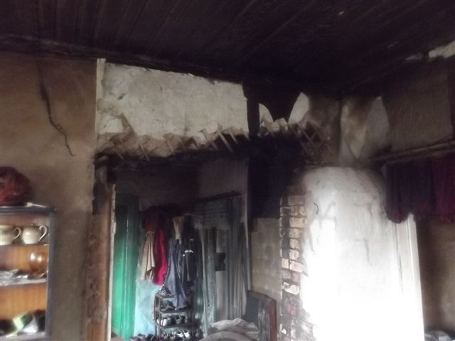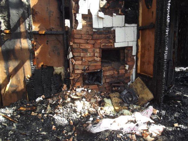 В результате пожара кровля уничтожена по всей площади, дом выгорел изнутри.