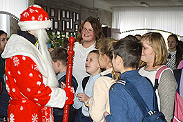 Праздничную атмосферу создают и другие мероприятия в школе. В этот день ученики 2-го класса писали письмо Деду Морозу. Каждый написал на листочке свое пожелание, затем все приклеили свои кружочки на общий лист. Во время поездки на главную елку страны ребята возьму это письмо с собой. Затем оно будет доставлено из Минска главному белорусскому Деду Морозу в Беловежскую пущу.