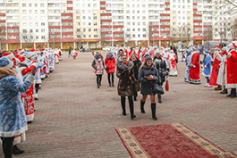 На благотворительном празднике во Дворце культуры Солигорска собрались 740 ребят из районов Минской области. Всех гостей встречал коридор из Дедов Морозов и Снегурочек.