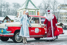 Праздничный автопробег "Красного пищевика"! Дед Мороз и Снегурочка приедут в Солигорск на ретро-автомобиле со сладкими подарками