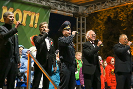На сцену вышли солисты Геннадий Сивцов, Олег Щербов, Петр Петрик, Сергей Соловей, Николай Прокопович, Илья Прокопович, а также детский хор. Вместе с собравшимися на площади солигорчанами была исполнена песня "День Победы", которая уже долгие годы является одним из главных символов этого священного праздника. Получилось торжественно, искренне, вдохновенно. В холодную погоду на площади словно стало теплей от мощного эмоционального заряда этой легендарной песни, ощущалась атмосфера единства. Смотрим, как это было.