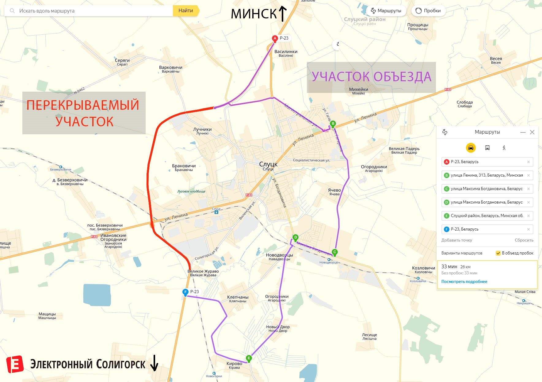 Таким образом, при движении, например, из Минска в Солигорск водителям придётся проехать по населённым пунктам около 11-ти лишних километров.