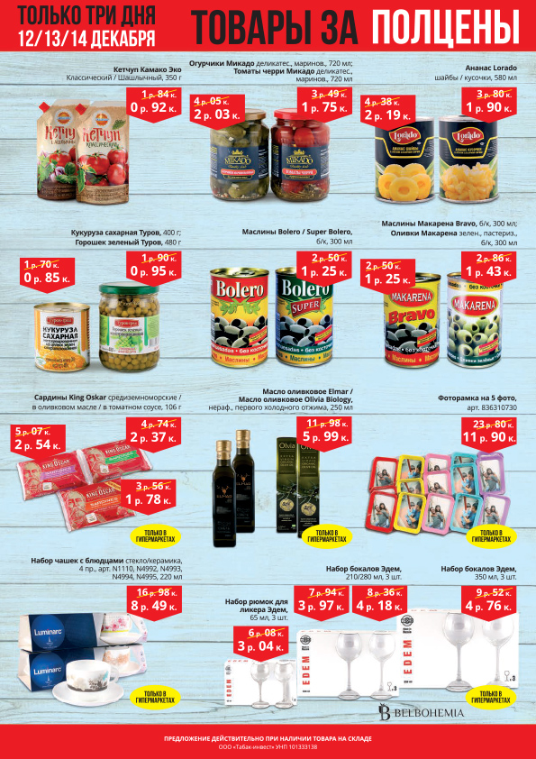 Заполняй корзину - плати половину! Только 12,13 и 14 декабря в гипермакете "Корона" акция "Товары за полцены"!
