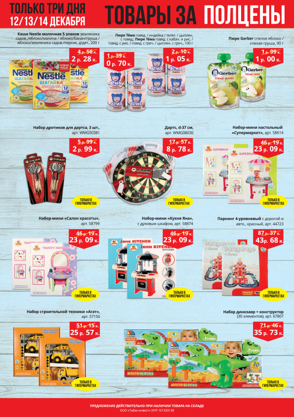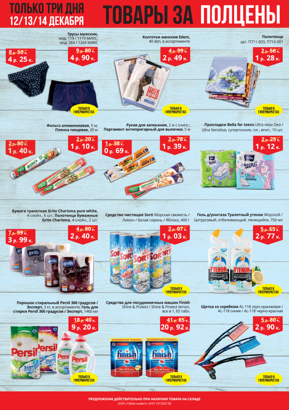 Акция действует на ограниченный ассортимент товаров только в гипермаркете "Корона" (ул.К.Заслонова,29)!