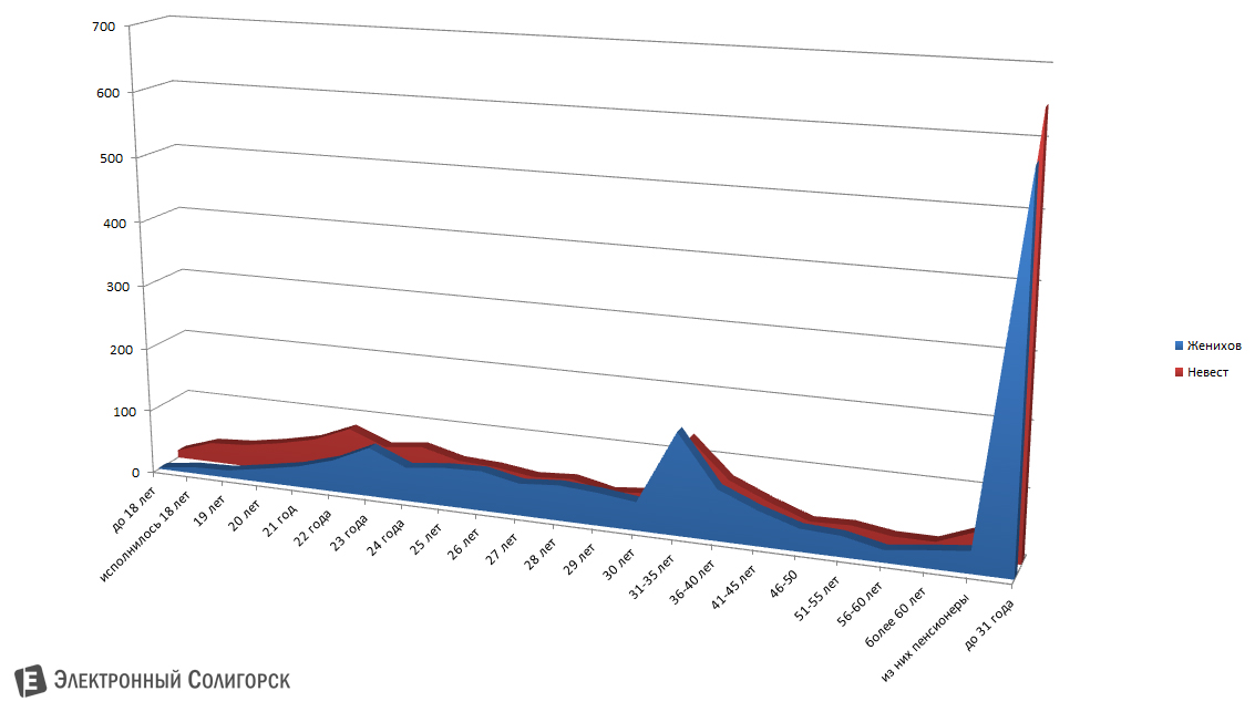 | Возраст | Женихов | Невест |