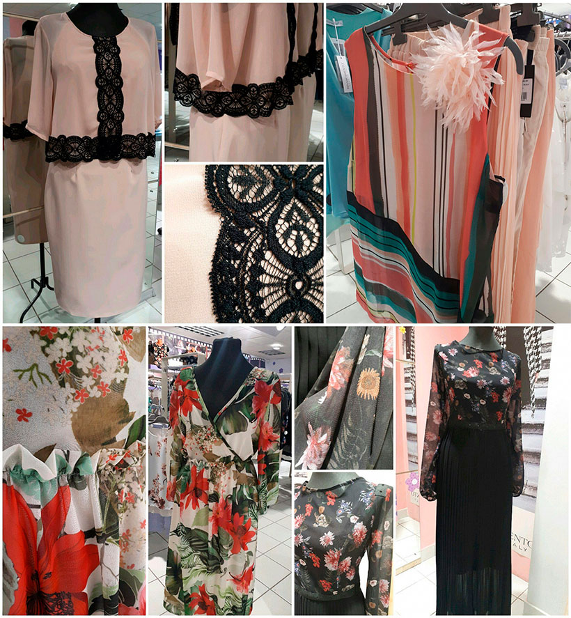 В магазине представлены платья известных всему миру брендов: Rinascimento, Cache-Cache, Zara, Bershka, Vila, Pull&Bear, Mango и др. Милые пудровые, сочные, кружевные, платья-футляры, шелковые, с плиссировкой...Список можно продолжать бесконечно, лучше просто прийти и увидеть все самой.